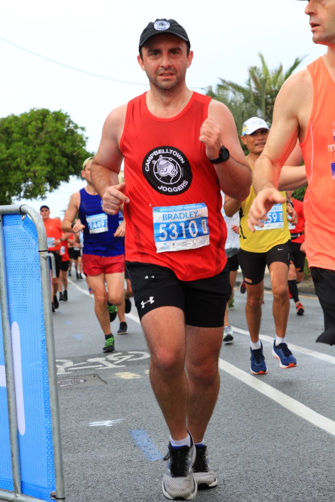 The biggest factor of the Gold Coast weekend was the really bad weather. The wind was blowing a gale and we had that typical tropical rain. On the morning of the race, the weather did not seem as bad, the wind was not blowing but the rain was threatening. Ten minutes before the start gun, while lined up at the start it bucketed down. Everything was soaked, I was especially worried that my feet were so wet.